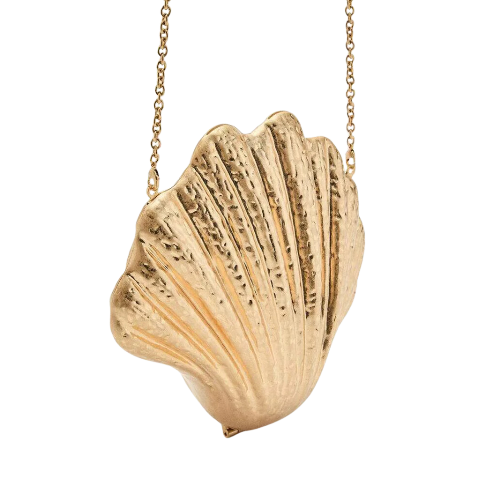 - Zara – staat bekend om hun schelpvormige en parelclutches die elke zomer terugkomen.