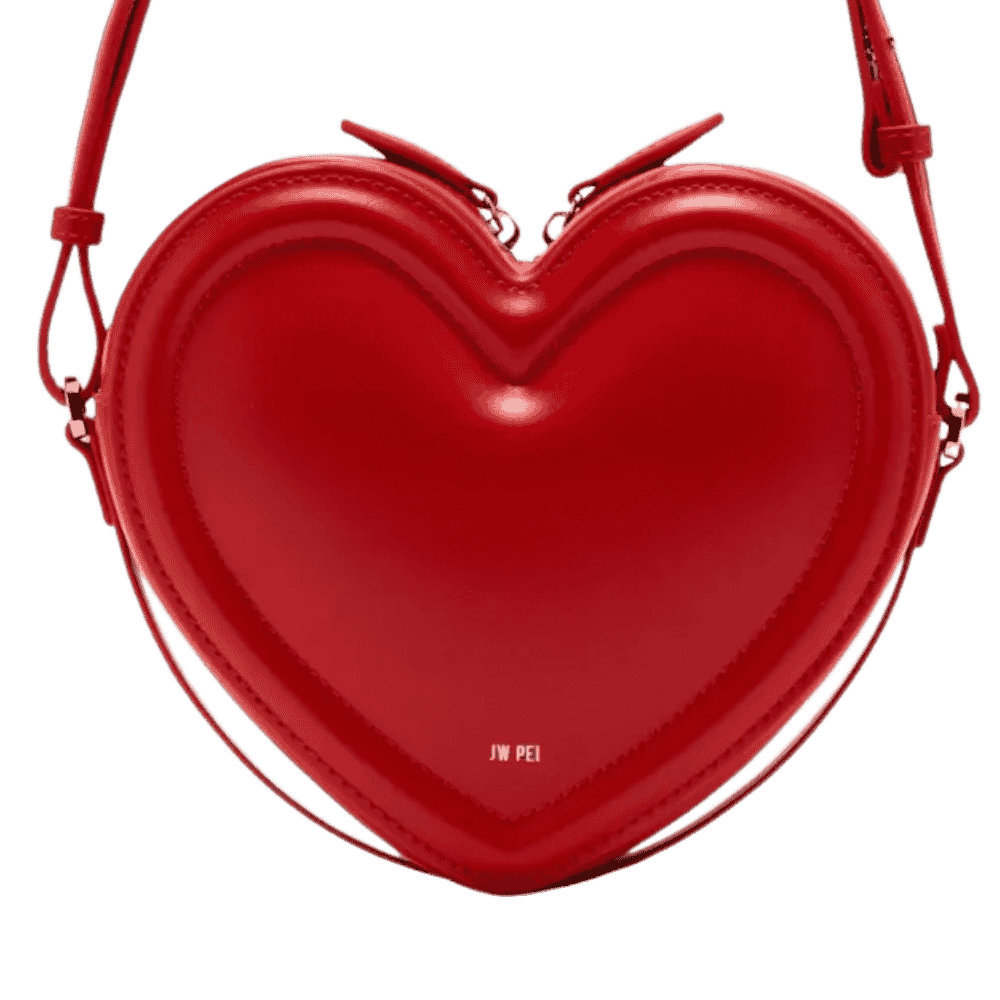 De vorm en de kleur zitten héél dicht tegen het origineel aan: hetzelfde knalrode hart, dezelfde glossy afwerking en zelfs de strakke minimalistische look zonder overbodige details. JW Pei staat bekend om z’n betaalbare en duurzame tassen, dus je krijgt hier niet alleen de Alaïa-vibe voor een fractie van de prijs, maar ook een vegan en milieuvriendelijk alternatief.