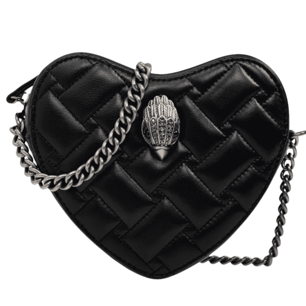 De hartvorm blijft natuurlijk het middelpunt, maar waar Alaïa strak en minimalistisch is, gaat Kurt Geiger voor bold en stoer. Het gewatteerde patroon, de chunky ketting en de iconische adelaar als detail maken deze tas perfect voor wie nét wat meer rock-’n-roll wil toevoegen aan een outfit. In plaats van romantisch rood krijg je hier een tijdloos zwart dat je letterlijk overal mee kunt combineren.